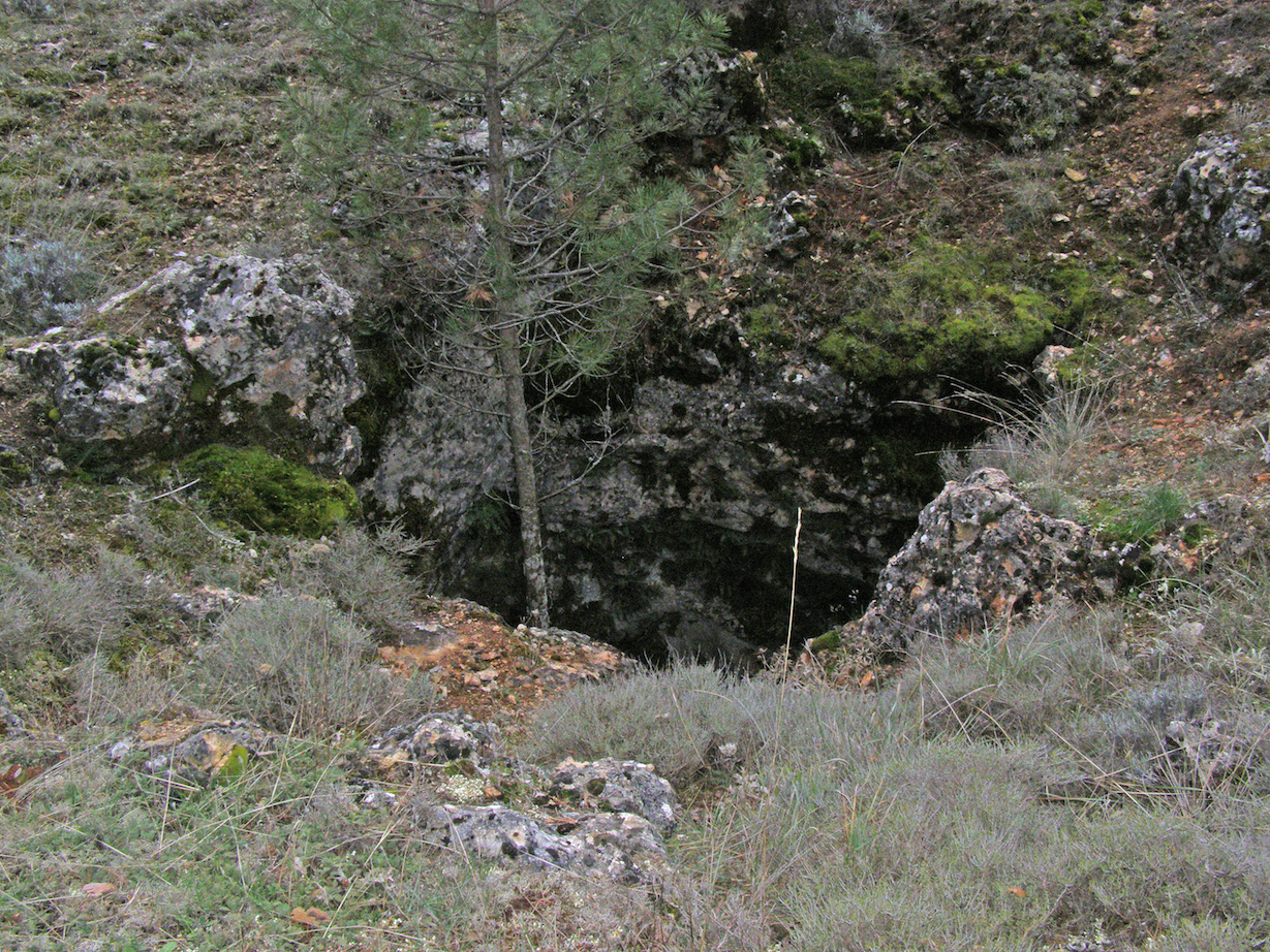 Bajamos el escarpe de acceso por donde subieron los compañeros (Pablo estaba allí) y podemos llegar a la entrada gracias a que habían practicado una senda entre los arbustos hiper-espinosos que llenan el fondo (llámese rosales silvestres, zarzas y majuelos).