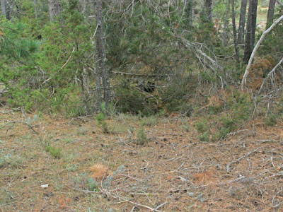 No puedo dejar de comentar el desastre que ocasionaron las nevadas tardías de la primavera... todo el pinar está lleno de árboles caídos, a veces de enorme tamaño, y otros partidos... todo el rato hay que andar rodeando troncos y copas. Una lástima, y además vimos pistas escasamente transitadas que se perderán inevitablemente, pues no se quitan de ellas los troncos, a veces enormes, y por ello se las comerá la vegetación antes o después... es lo natural.